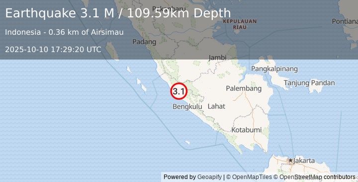 Earthquake Southern Sumatra, Indonesia (3.4 M) (2025-10-10 17:29:19 UTC)