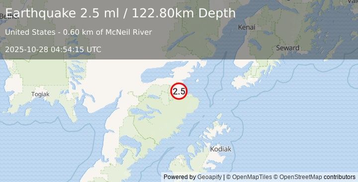 Earthquake 45 km SE of Kokhanok, Alaska (2.5 ml) (2025-10-28 04:54:15 UTC)